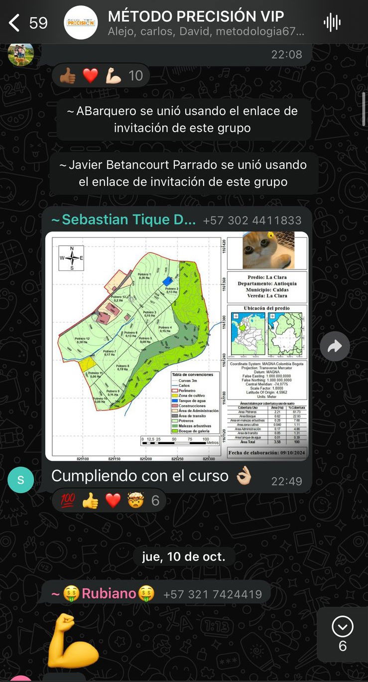Serás parte de la comunidad #1 de profesionales del Agro 4.0 en WhatsApp, donde tendrás acceso directo a mi equipo y a mí para resolver tus dudas en tiempo real.